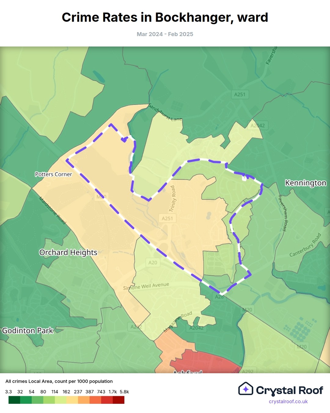 Bockhanger, (ward) includes areas with the following crime ratings (see map):