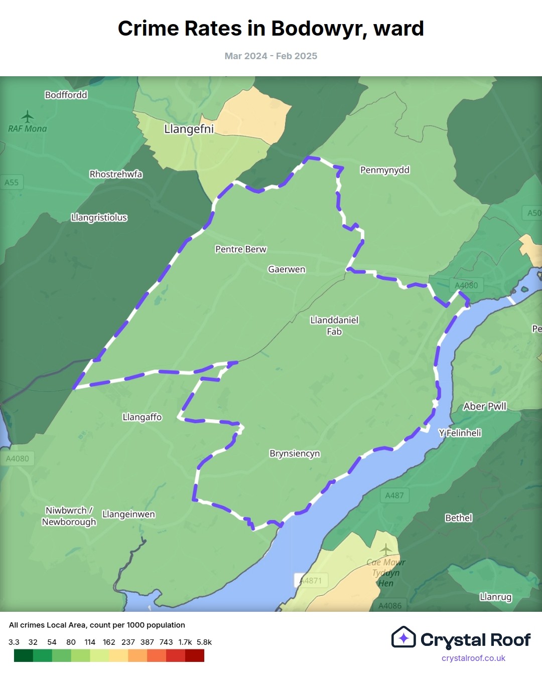 Bodowyr, (ward) includes areas with the following crime ratings (see map):