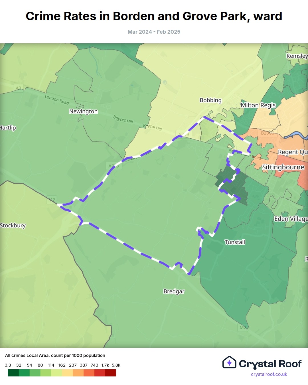 Borden and Grove Park, (ward) includes areas with the following crime ratings (see map):