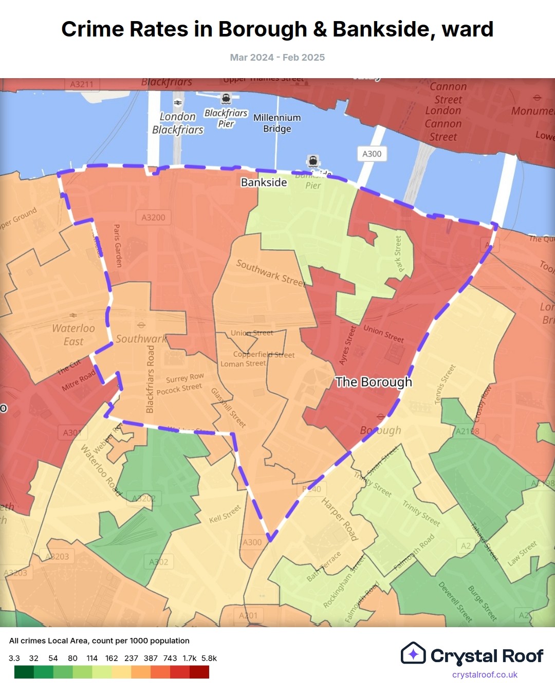 Borough & Bankside, (ward) includes areas with the following crime ratings (see map):