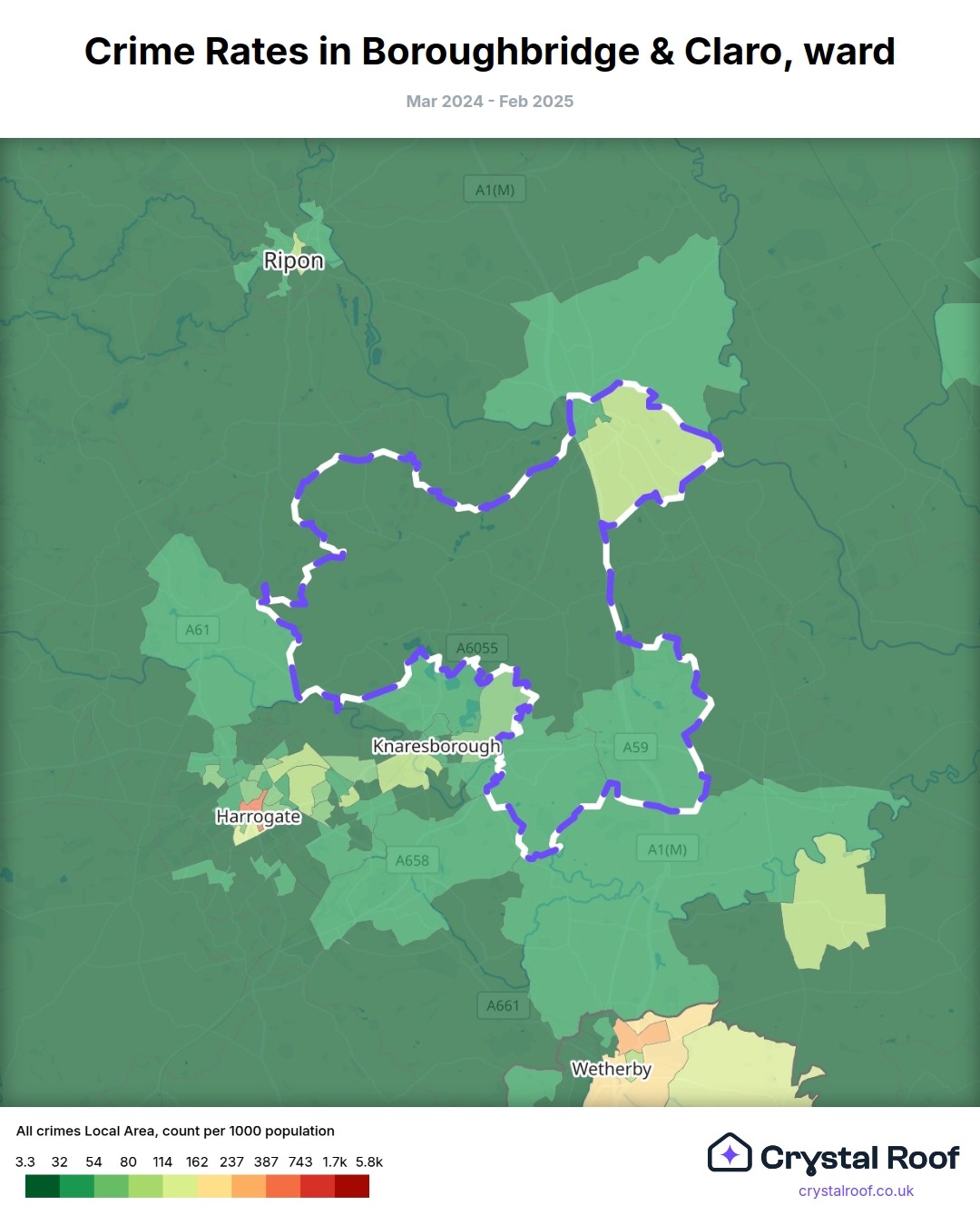 Boroughbridge & Claro, (ward) includes areas with the following crime ratings (see map):