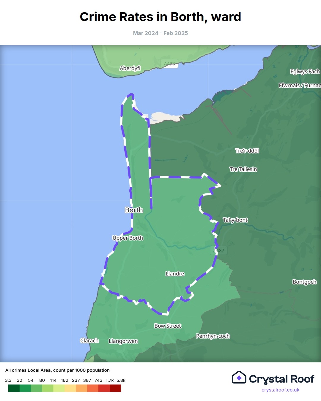Borth, (ward) includes areas with the following crime ratings (see map):