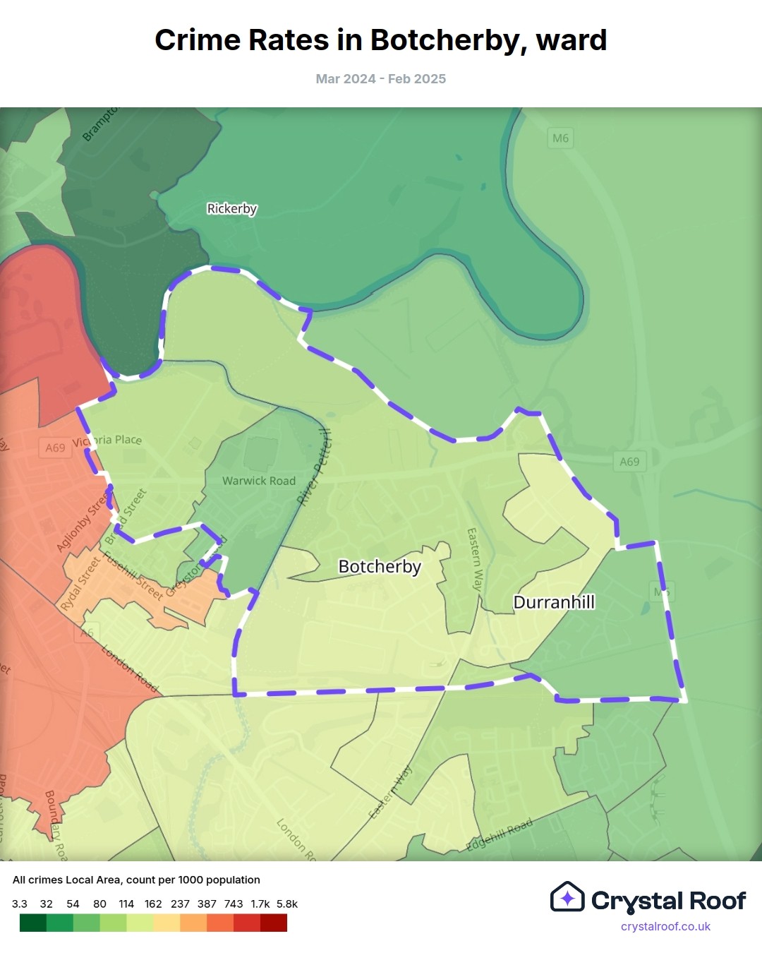 Botcherby, (ward) includes areas with the following crime ratings (see map):