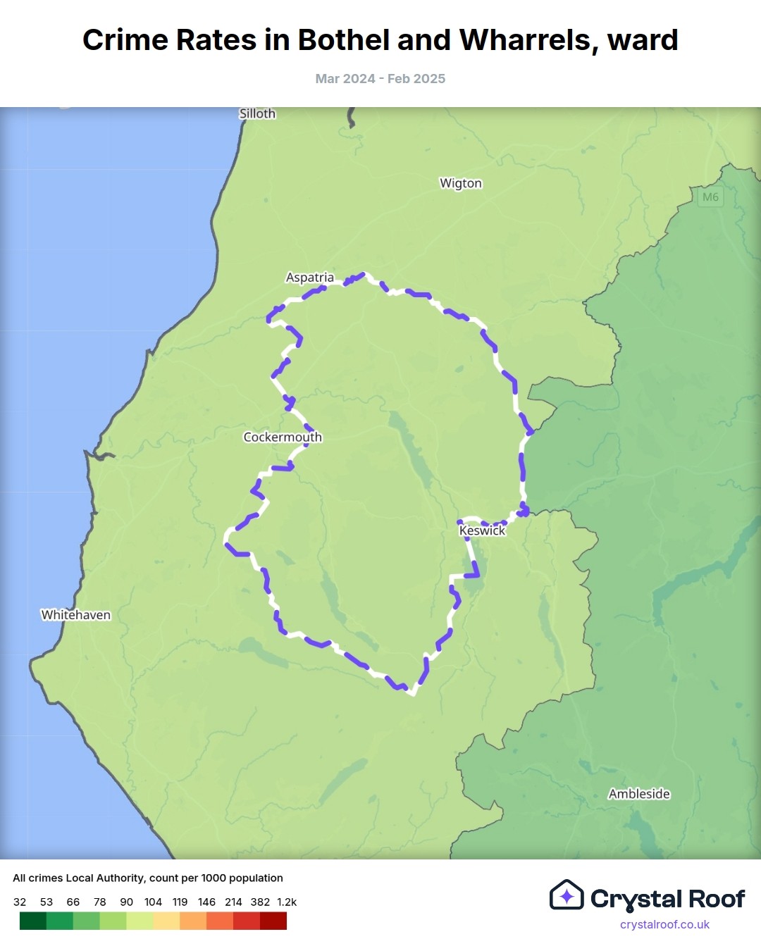 Bothel and Wharrels, (ward) includes areas with the following crime ratings (see map):
