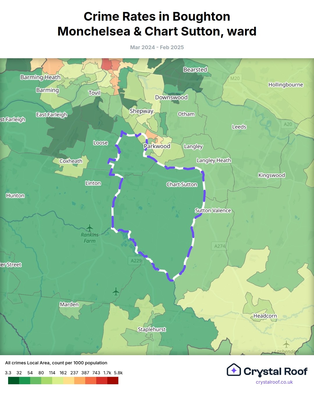 Boughton Monchelsea & Chart Sutton, (ward) includes areas with the following crime ratings (see map):