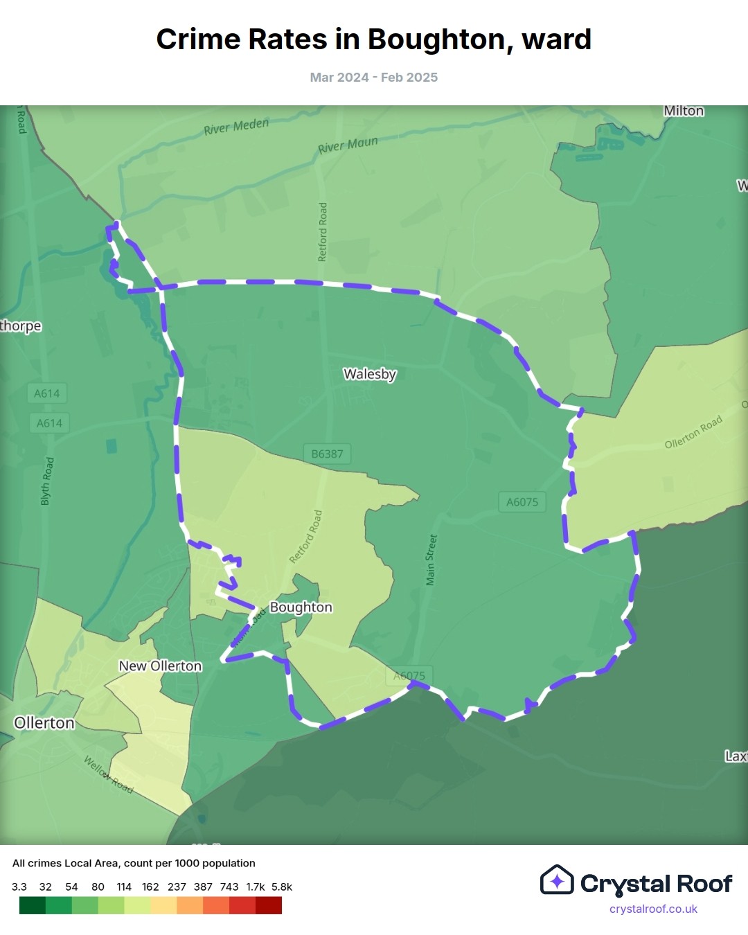 Boughton, (ward) includes areas with the following crime ratings (see map):