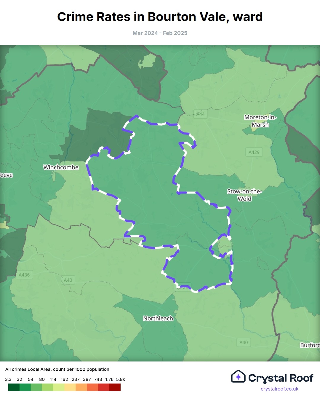 Bourton Vale, (ward) includes areas with the following crime ratings (see map):
