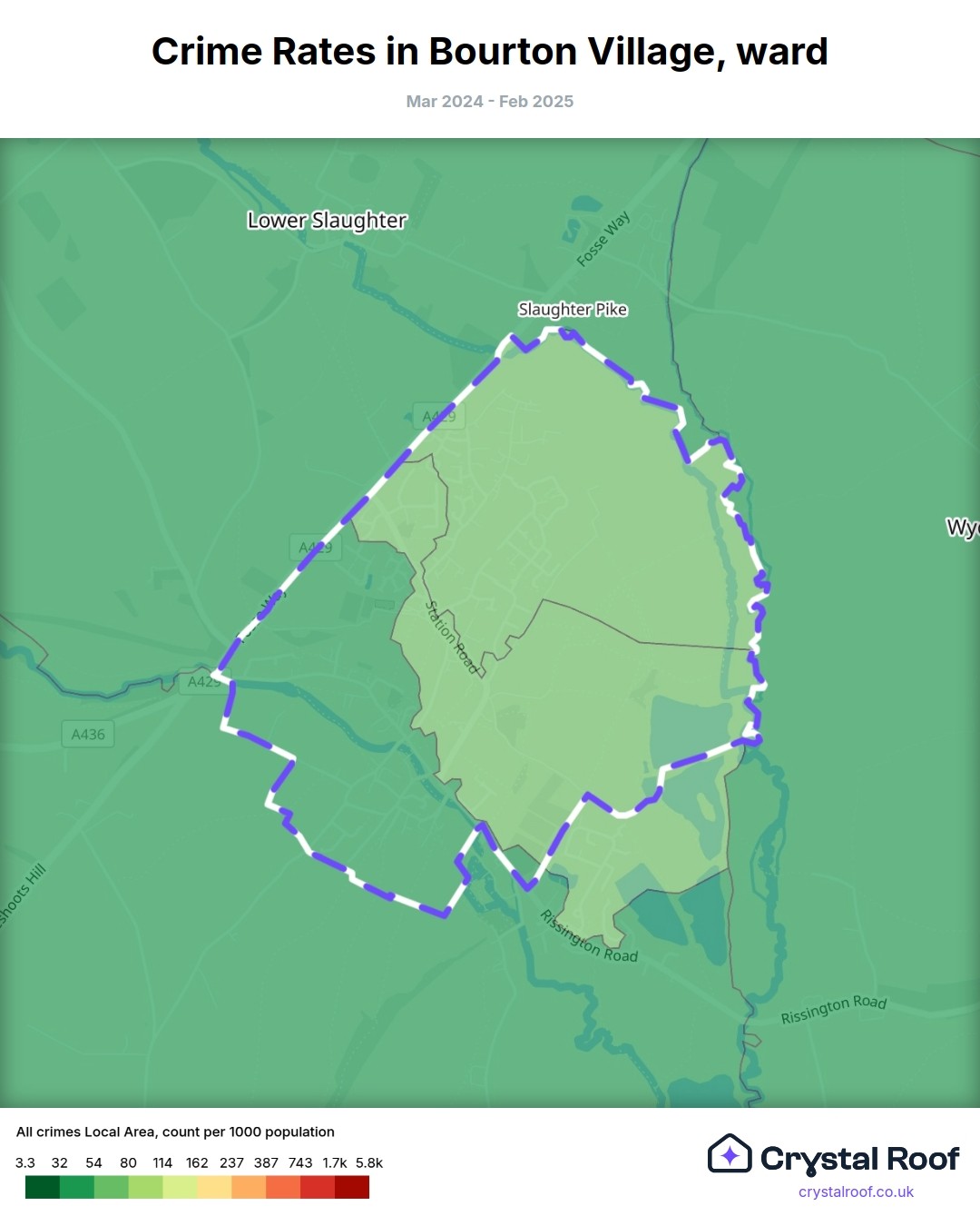 Bourton Village, (ward) includes areas with the following crime ratings (see map):