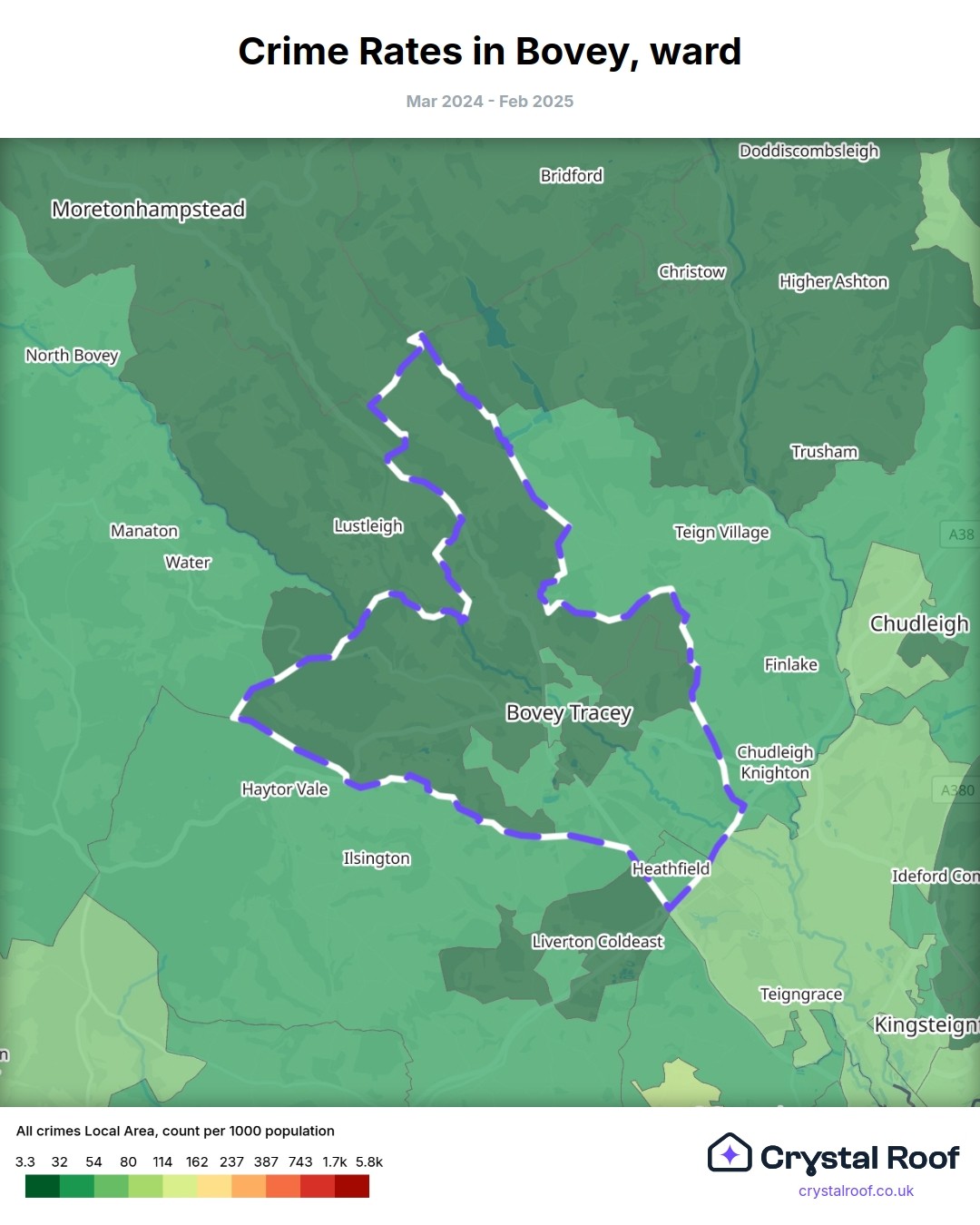 Bovey, (ward) includes areas with the following crime ratings (see map):
