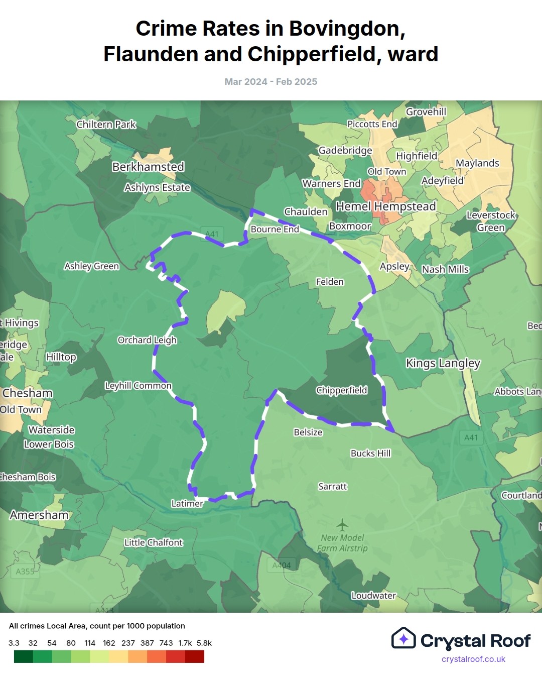 Bovingdon, Flaunden and Chipperfield, (ward) includes areas with the following crime ratings (see map):