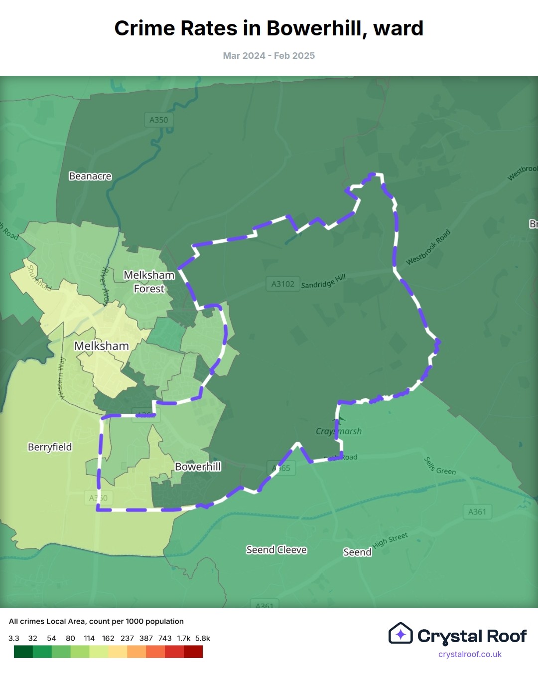 Bowerhill, (ward) includes areas with the following crime ratings (see map):