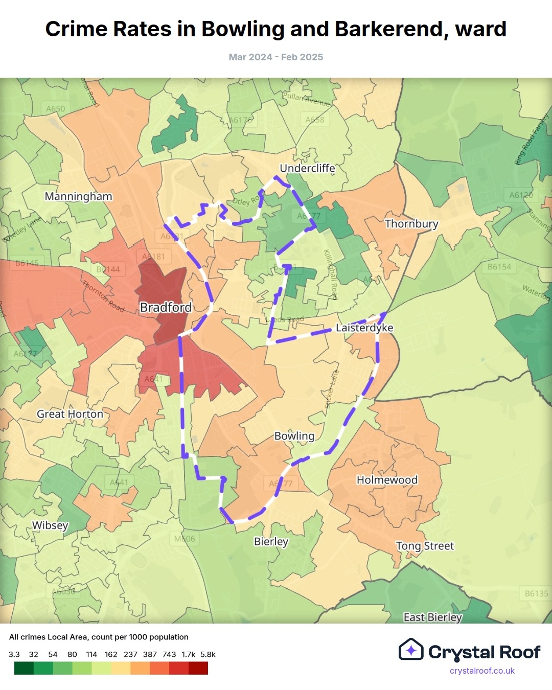 Bowling and Barkerend, (ward) includes areas with the following crime ratings (see map):