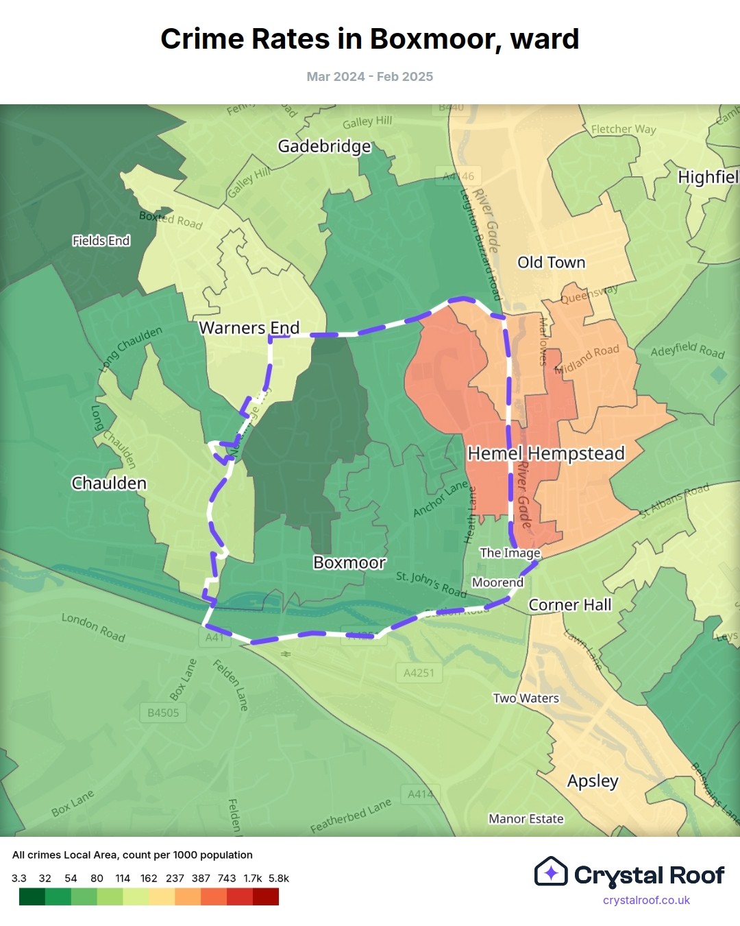 Boxmoor, (ward) includes areas with the following crime ratings (see map):