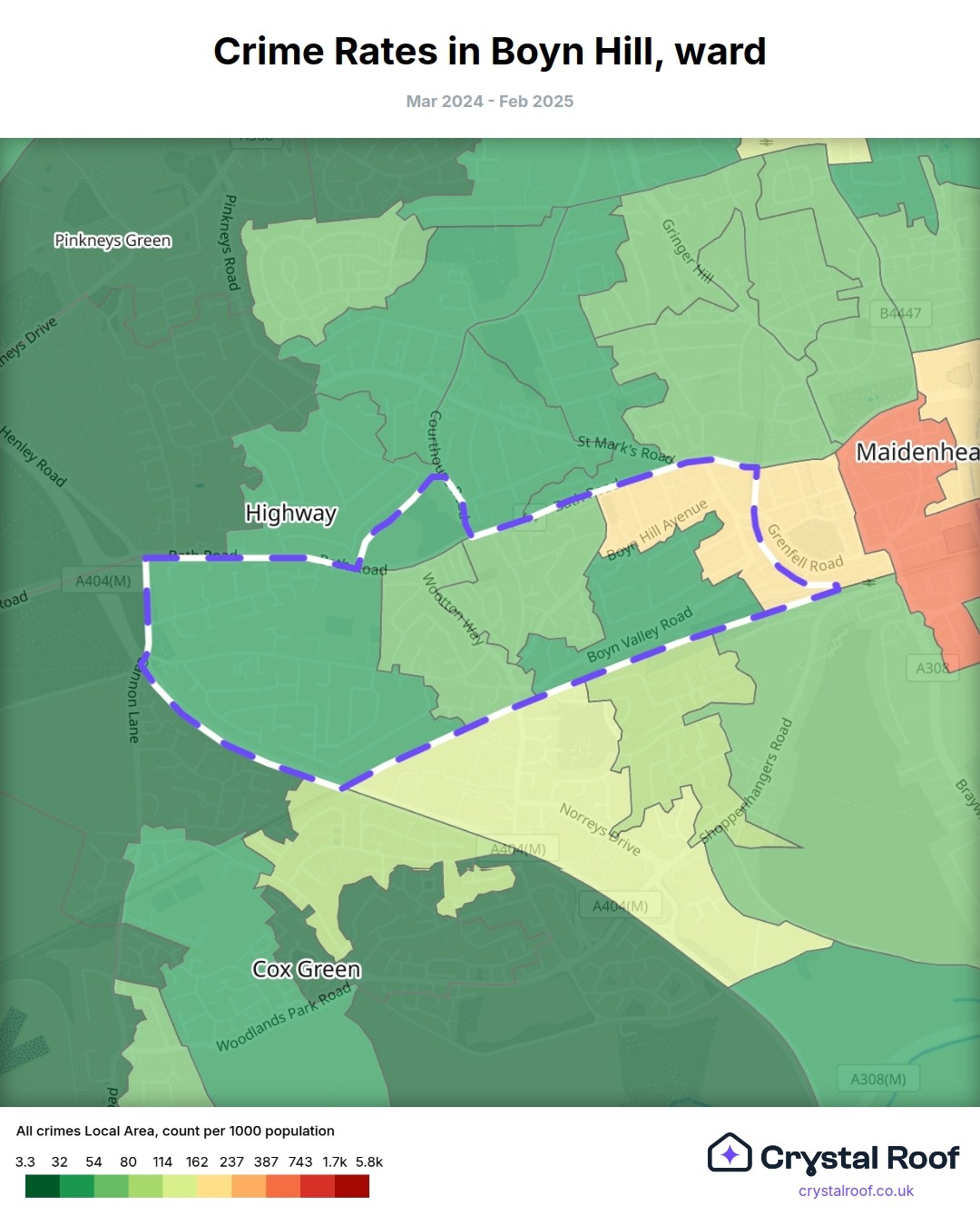 Boyn Hill, (ward) includes areas with the following crime ratings (see map):