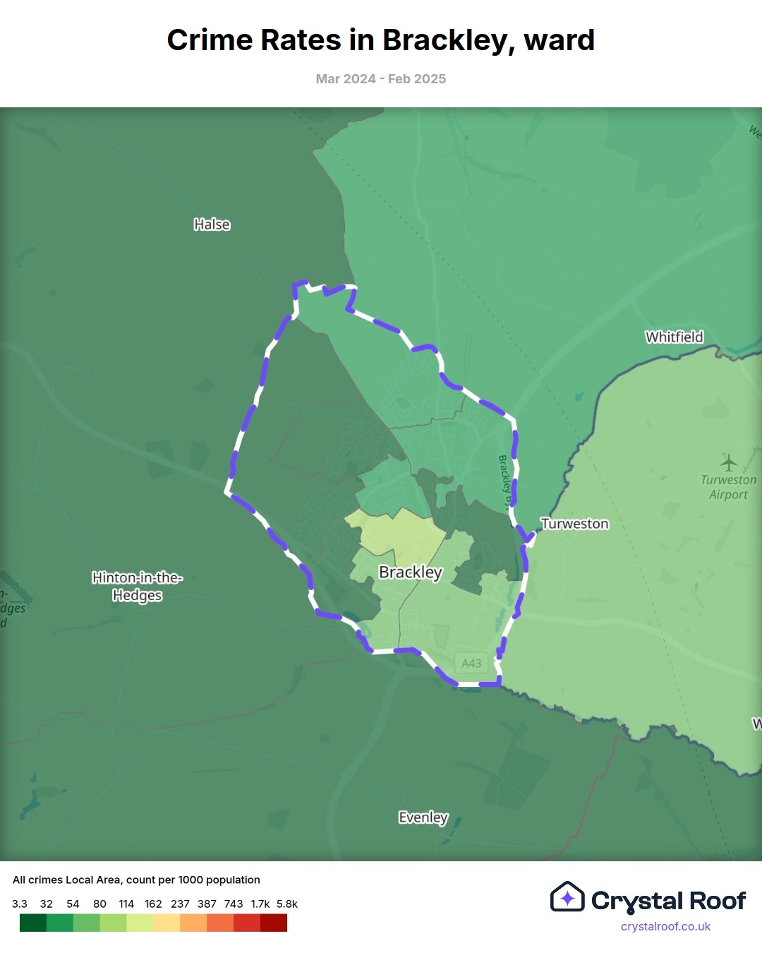 Brackley, (ward) includes areas with the following crime ratings (see map):