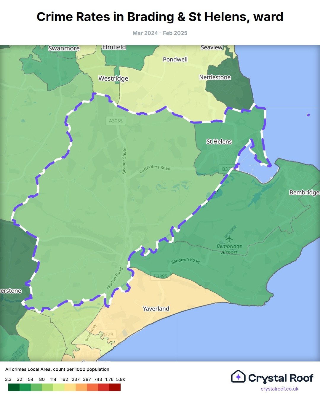 Brading & St Helens, (ward) includes areas with the following crime ratings (see map):