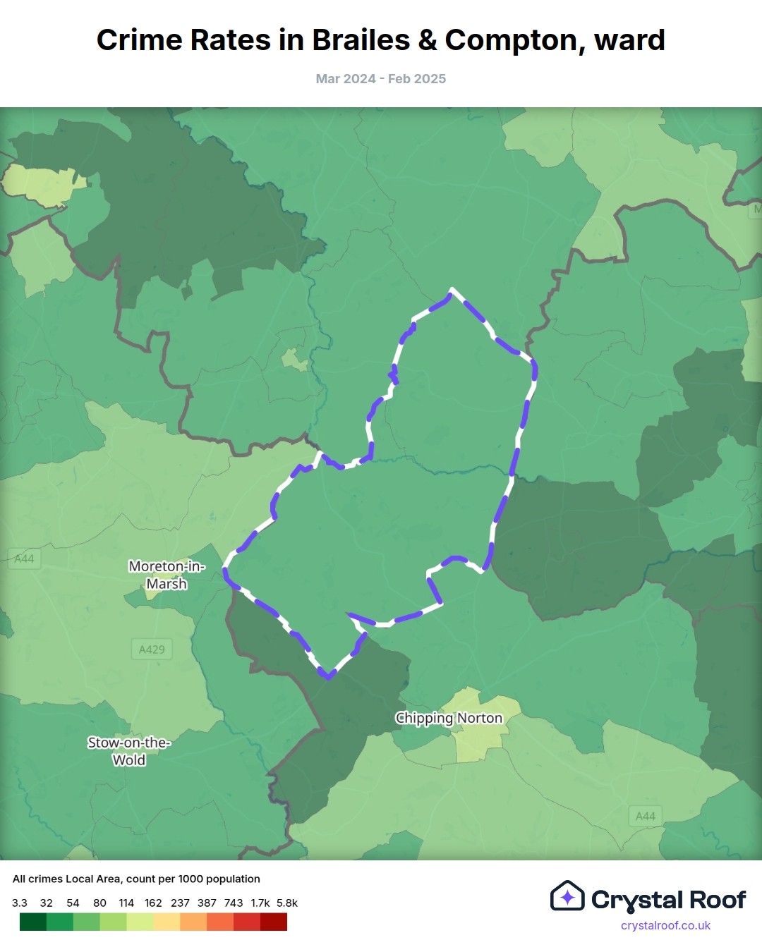 Brailes & Compton, (ward) includes areas with the following crime ratings (see map):