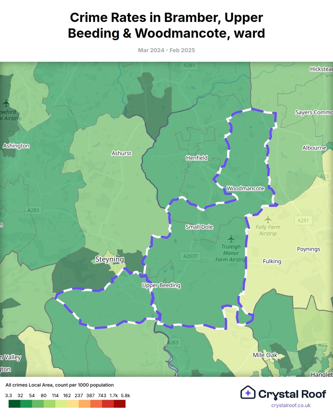 Bramber, Upper Beeding & Woodmancote, (ward) includes areas with the following crime ratings (see map):