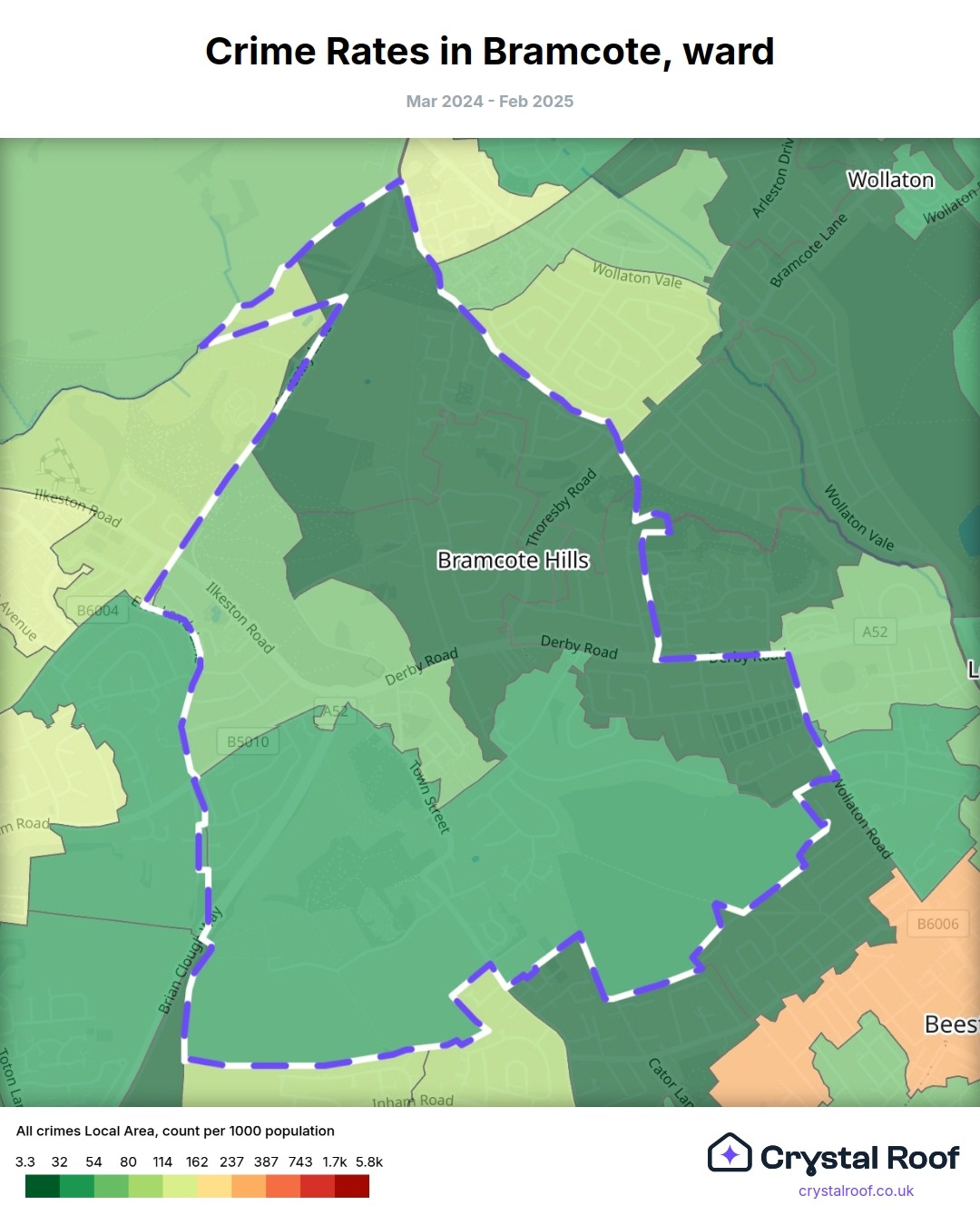 Bramcote, (ward) includes areas with the following crime ratings (see map):