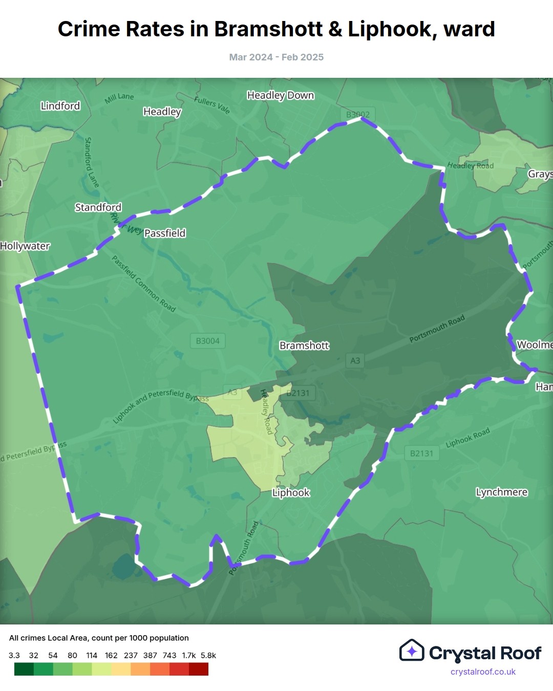 Bramshott & Liphook, (ward) includes areas with the following crime ratings (see map):