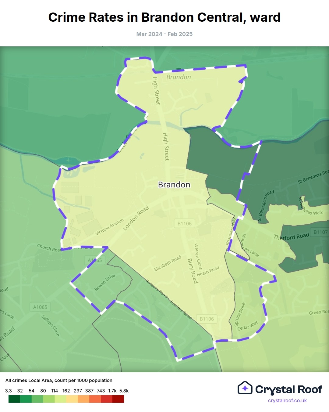 Brandon Central, (ward) includes areas with the following crime ratings (see map):