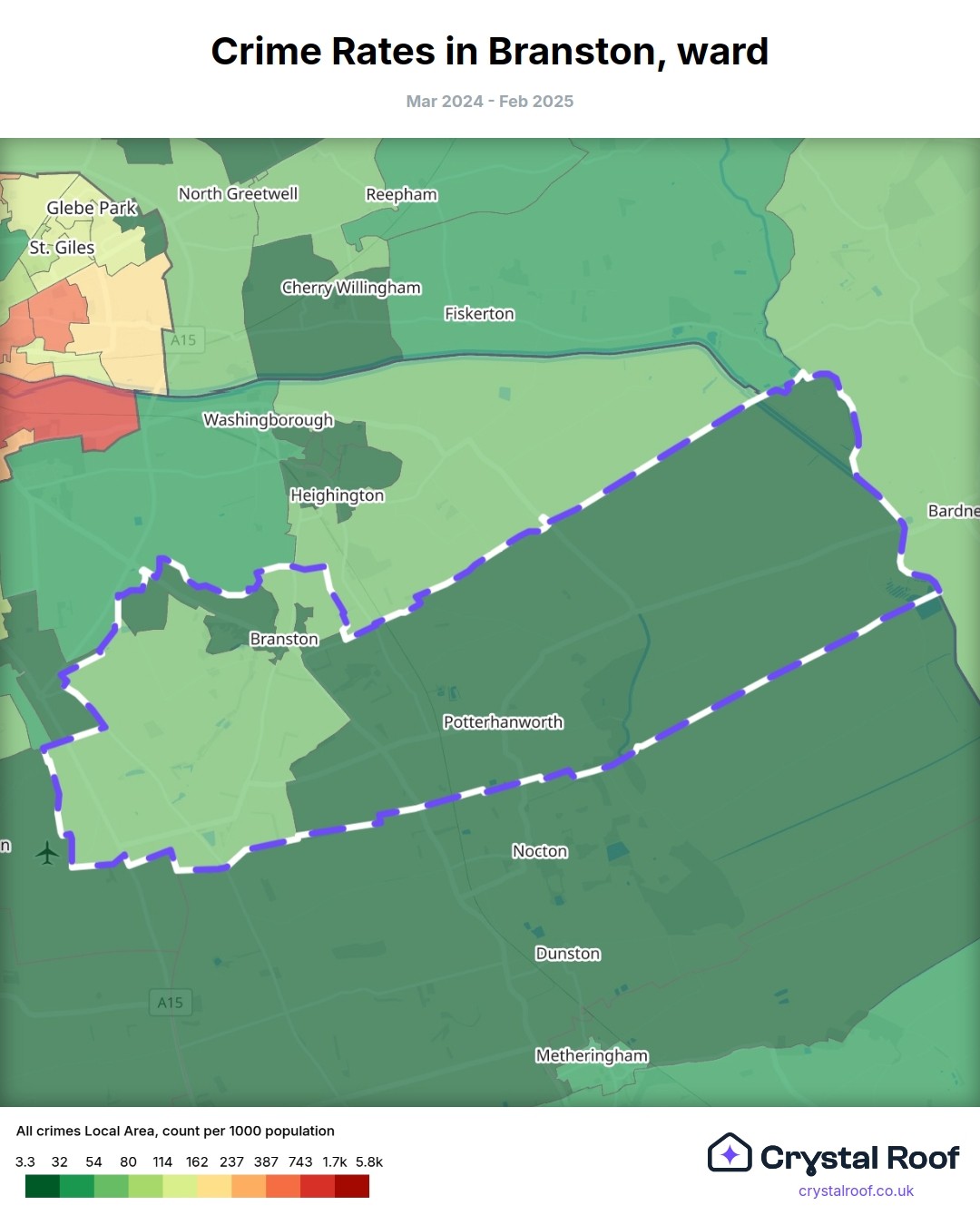 Branston, (ward) includes areas with the following crime ratings (see map):