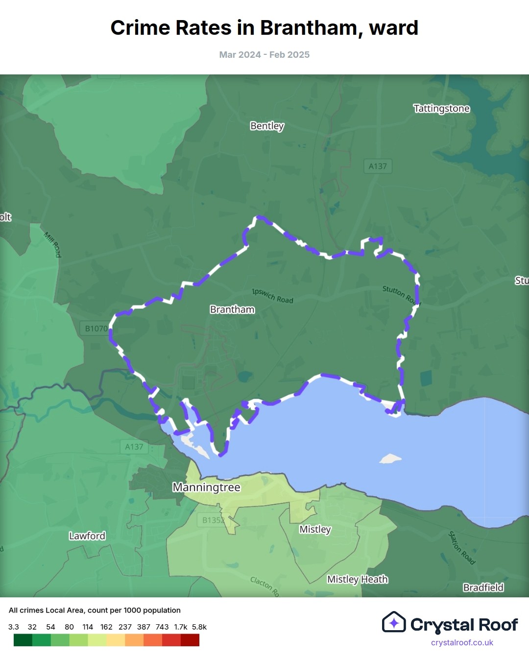 Brantham, (ward) includes areas with the following crime ratings (see map):