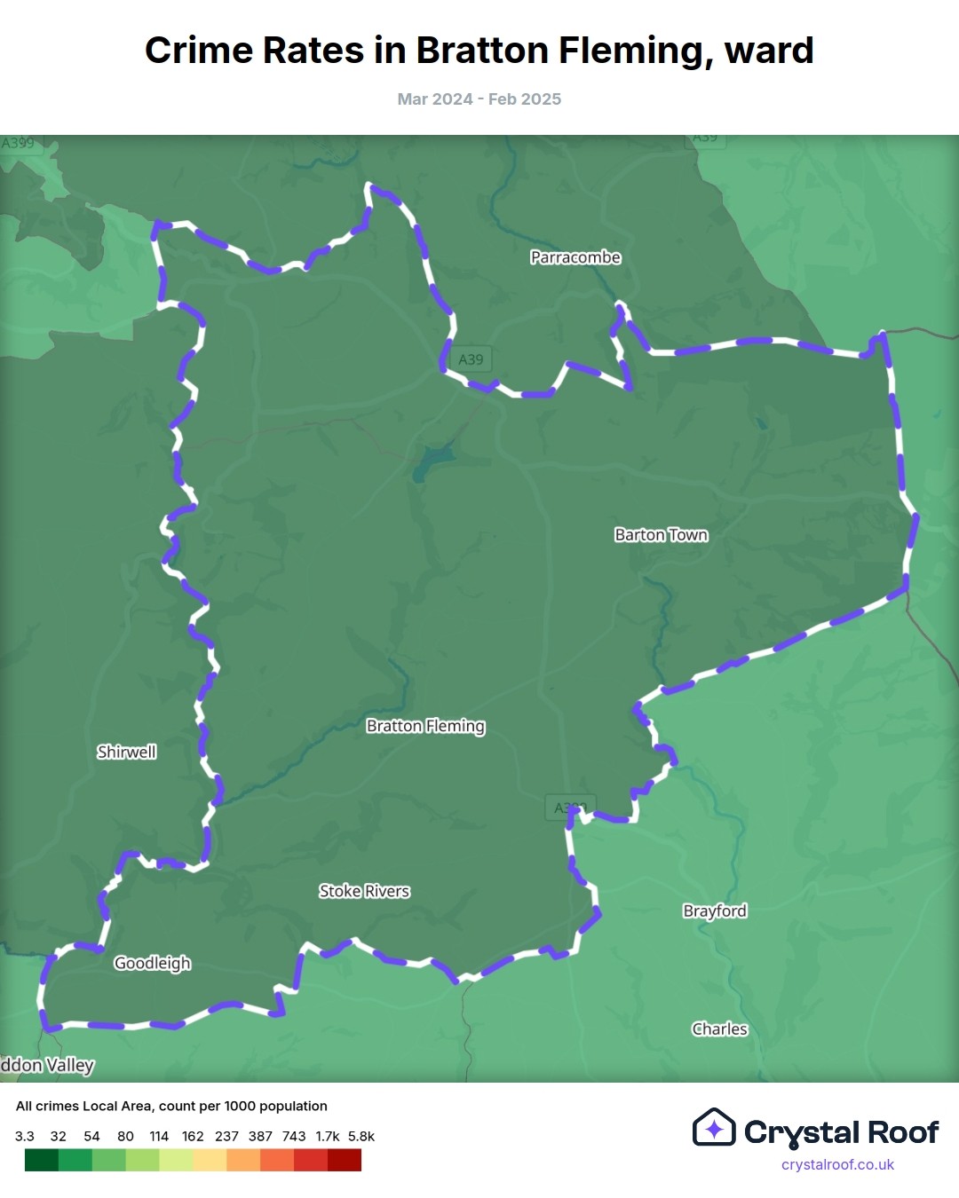 Bratton Fleming, (ward) includes areas with the following crime ratings (see map):