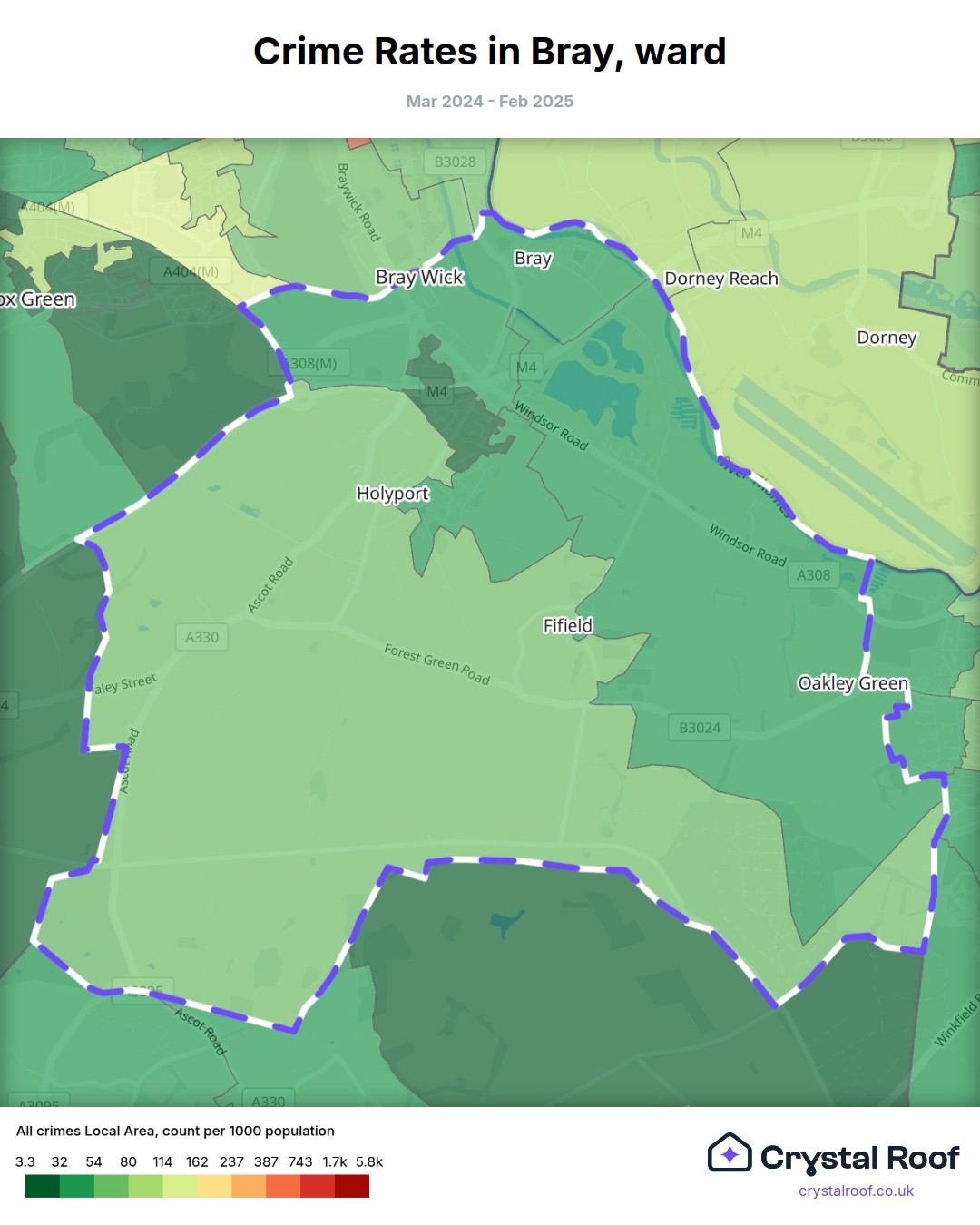 Bray, (ward) includes areas with the following crime ratings (see map):