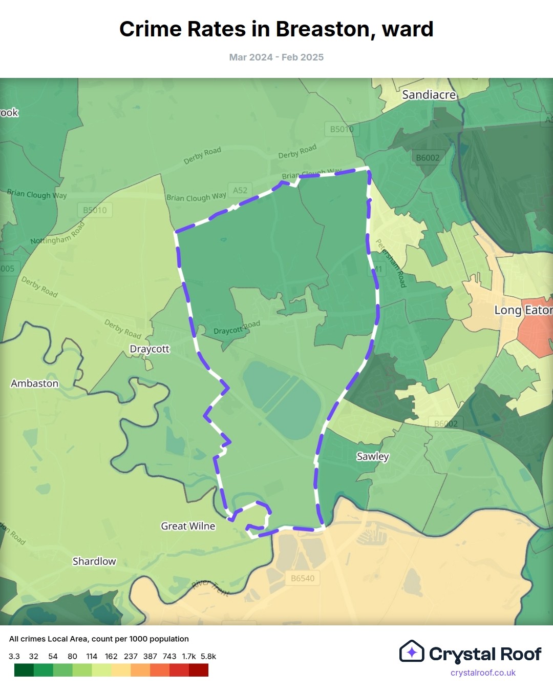 Breaston, (ward) includes areas with the following crime ratings (see map):