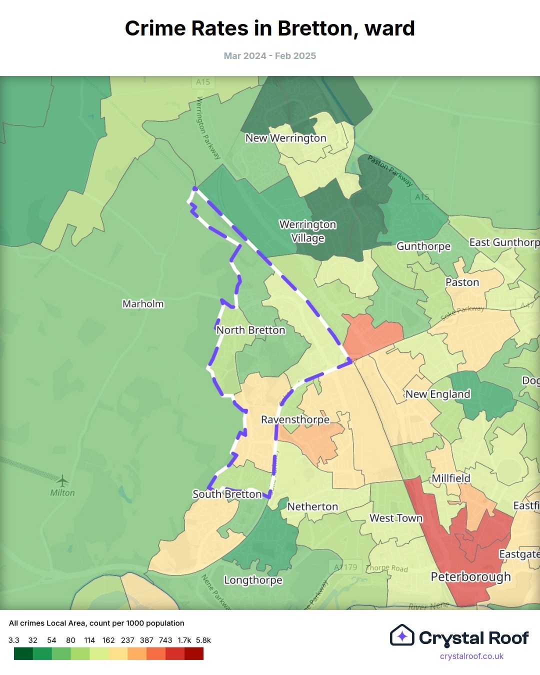 Bretton, (ward) includes areas with the following crime ratings (see map):