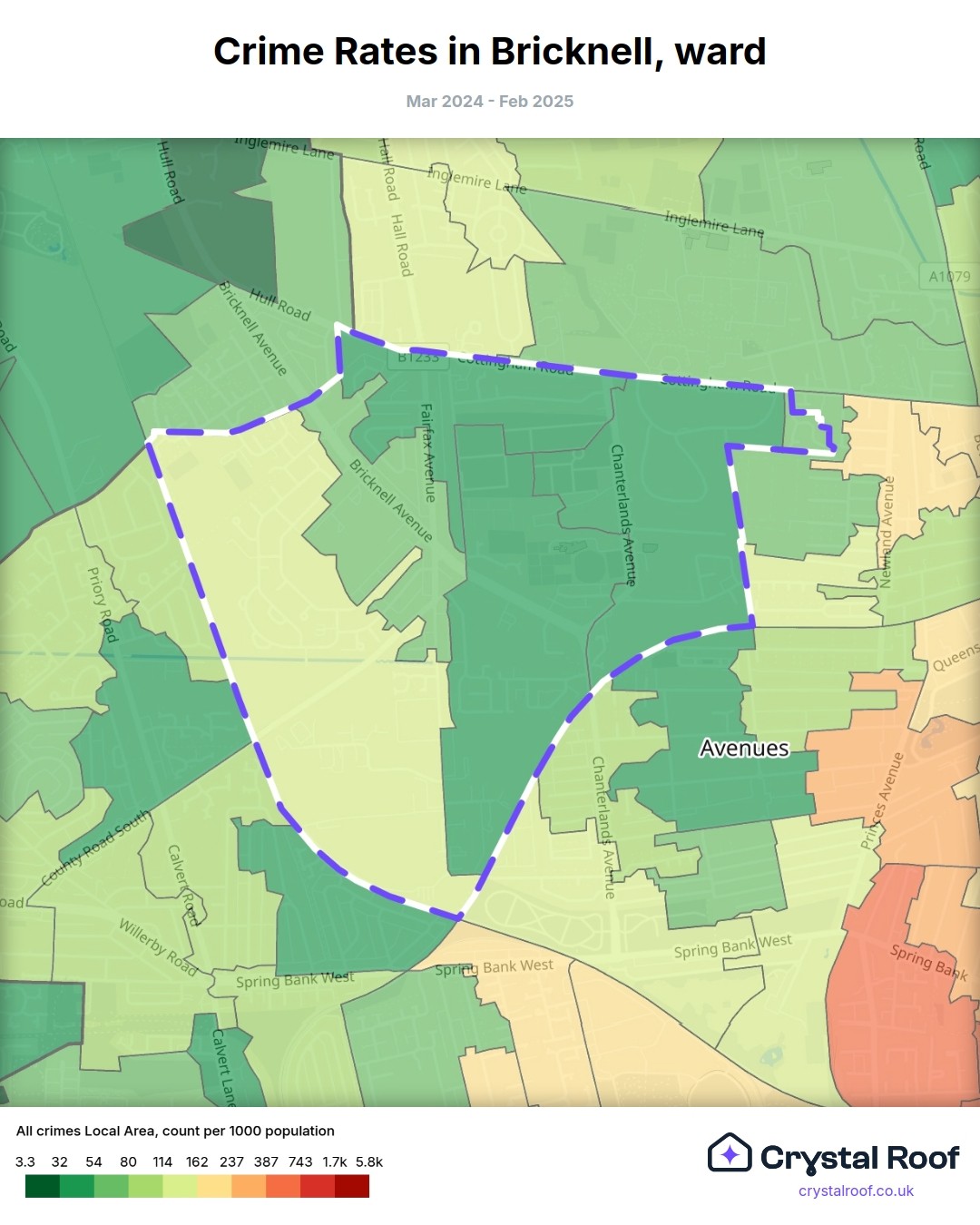 Bricknell, (ward) includes areas with the following crime ratings (see map):