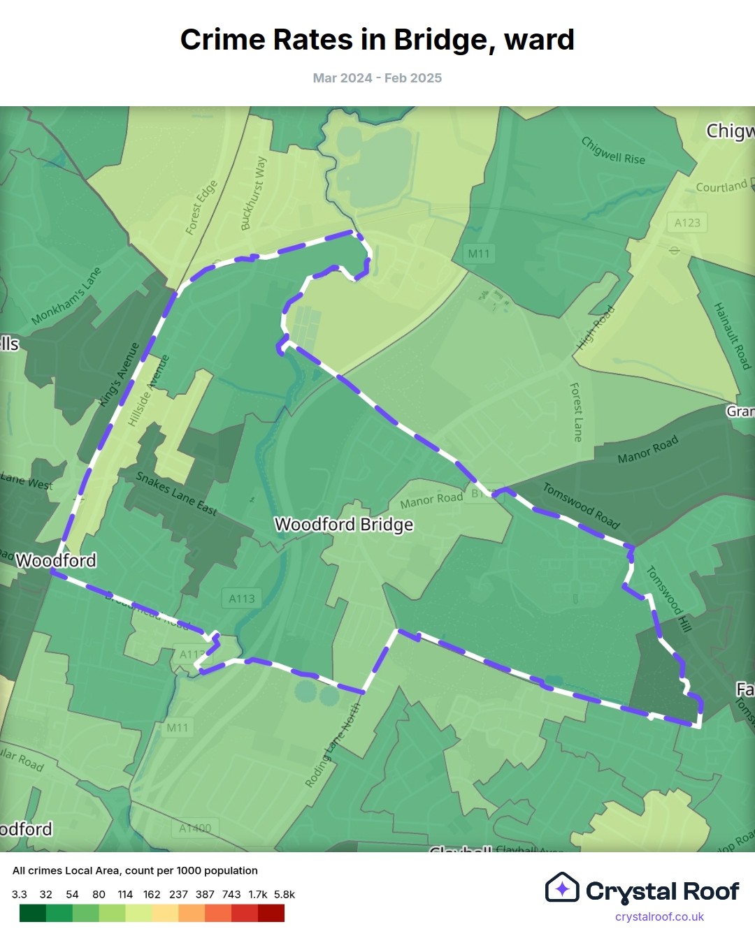 Bridge, (ward) includes areas with the following crime ratings (see map):