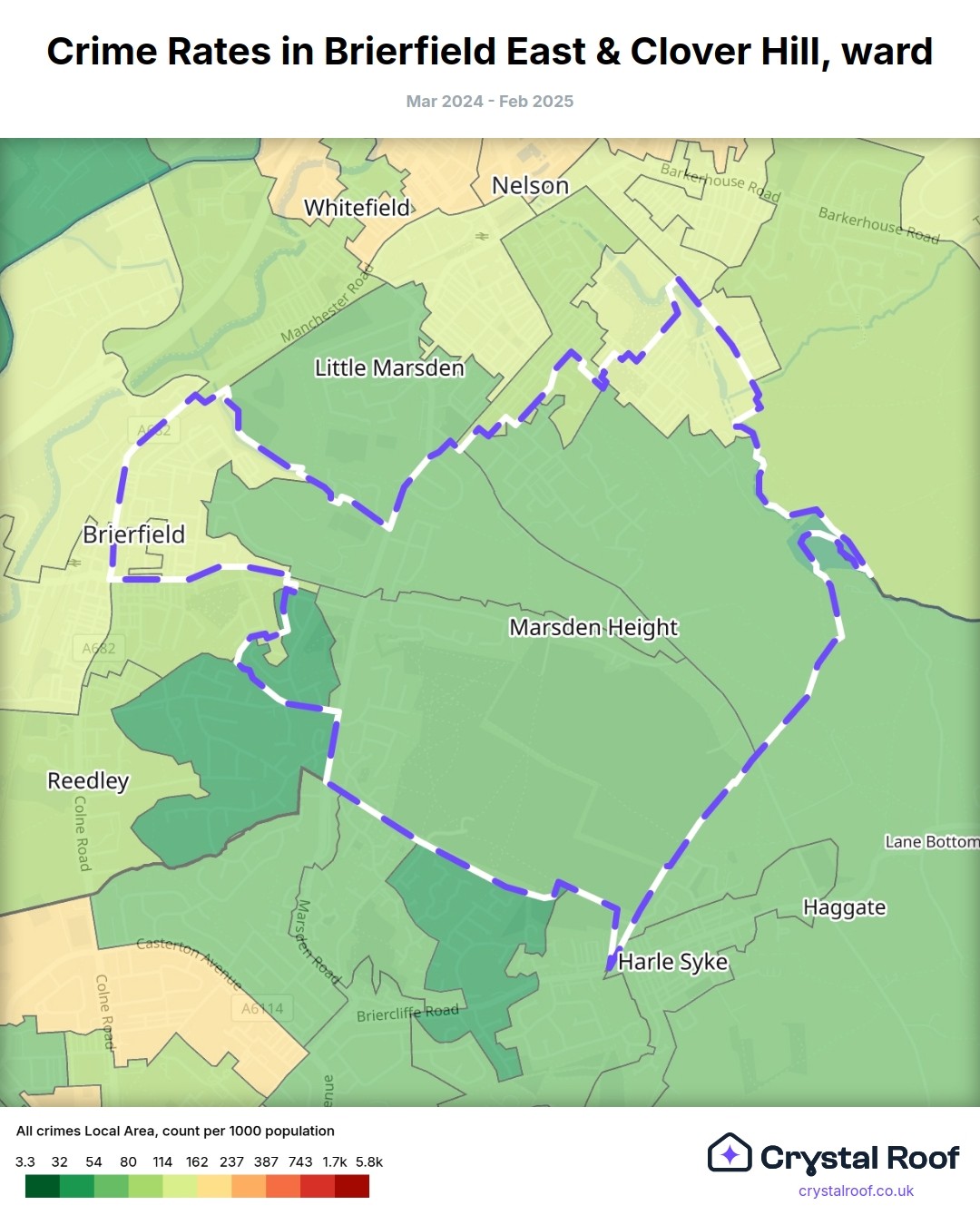 Brierfield East & Clover Hill, (ward) includes areas with the following crime ratings (see map):