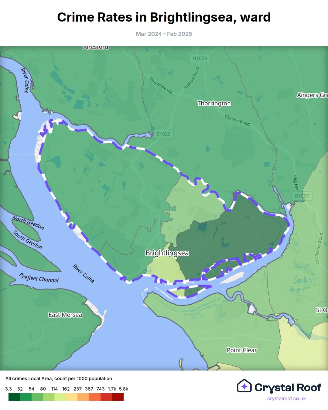 Brightlingsea, (ward) includes areas with the following crime ratings (see map):