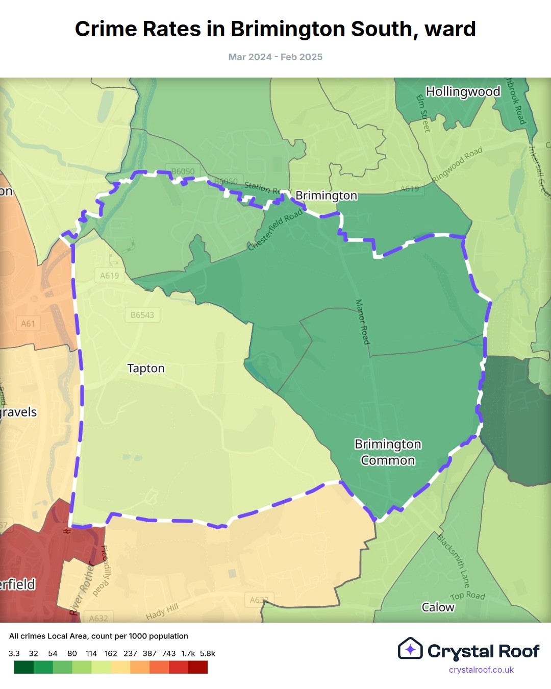 Brimington South, (ward) includes areas with the following crime ratings (see map):