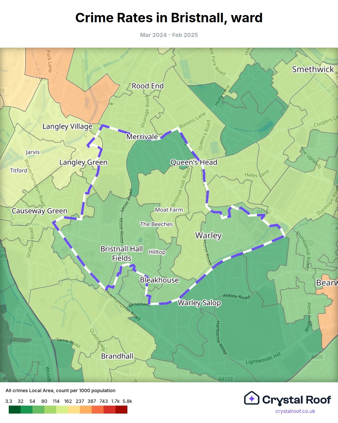 Bristnall, (ward) includes areas with the following crime ratings (see map):