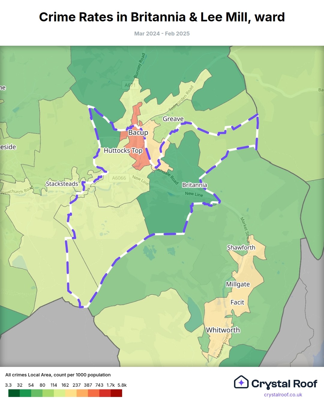 Britannia & Lee Mill, (ward) includes areas with the following crime ratings (see map):