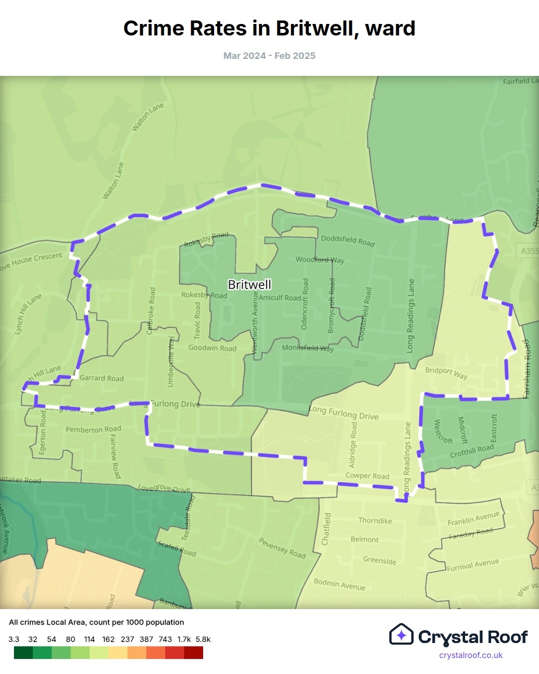 Britwell, (ward) includes areas with the following crime ratings (see map):