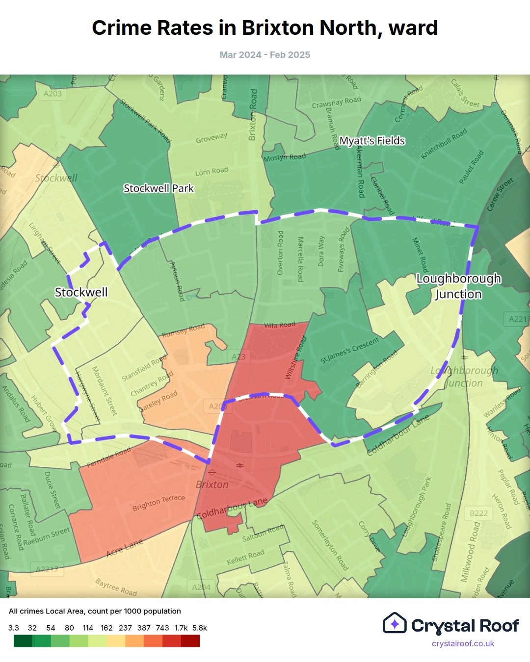 Brixton North, (ward) includes areas with the following crime ratings (see map):