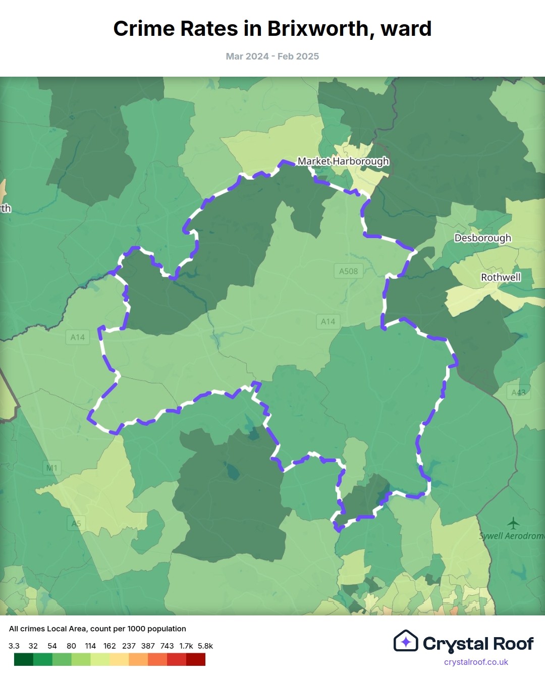 Brixworth, (ward) includes areas with the following crime ratings (see map):