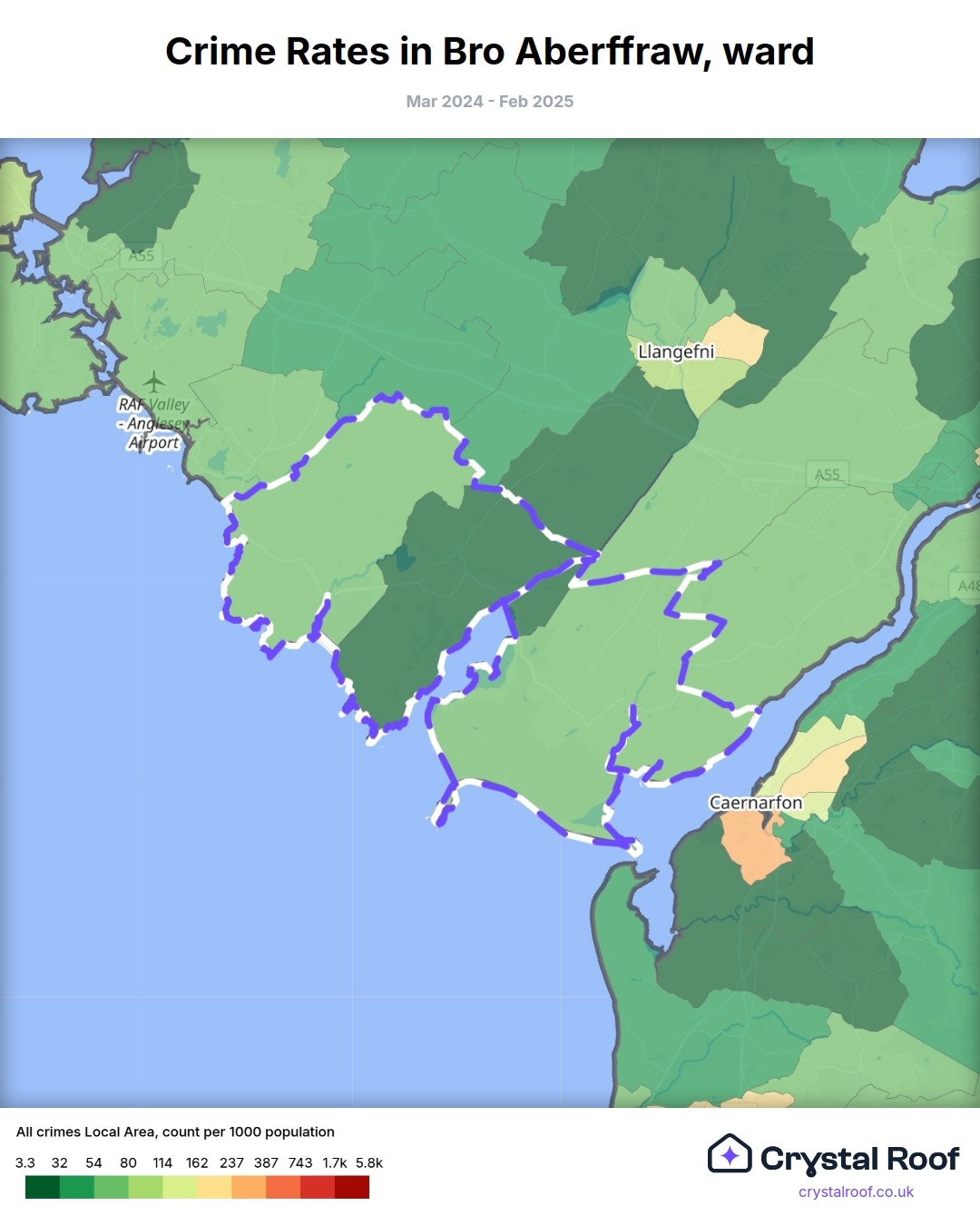 Bro Aberffraw, (ward) includes areas with the following crime ratings (see map):