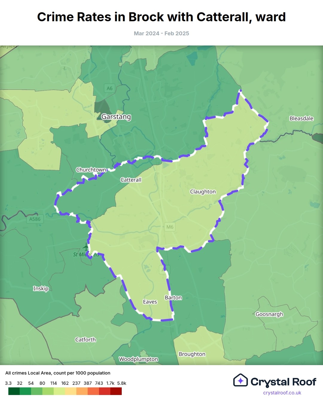 Brock with Catterall, (ward) includes areas with the following crime ratings (see map):