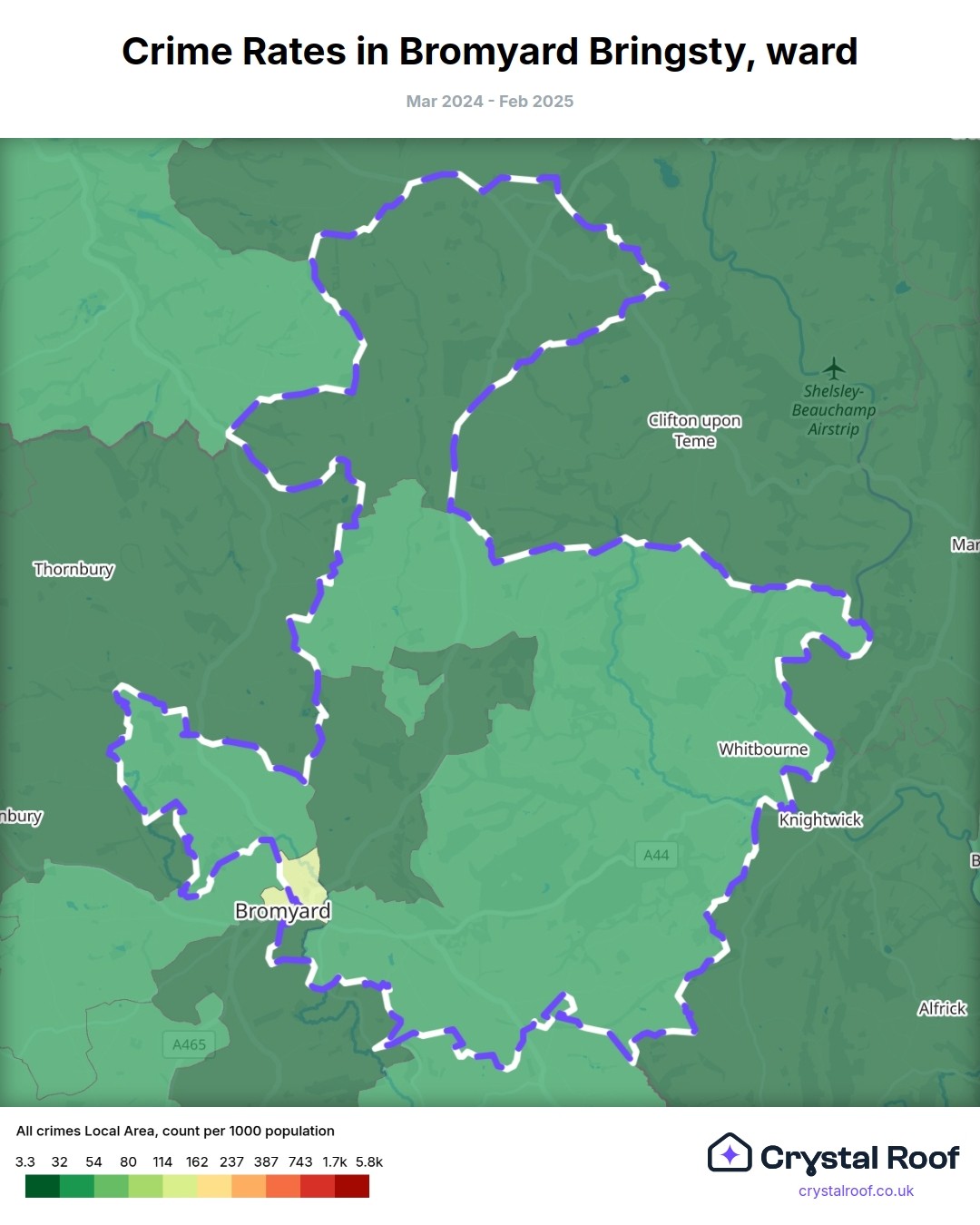 Bromyard Bringsty, (ward) includes areas with the following crime ratings (see map):