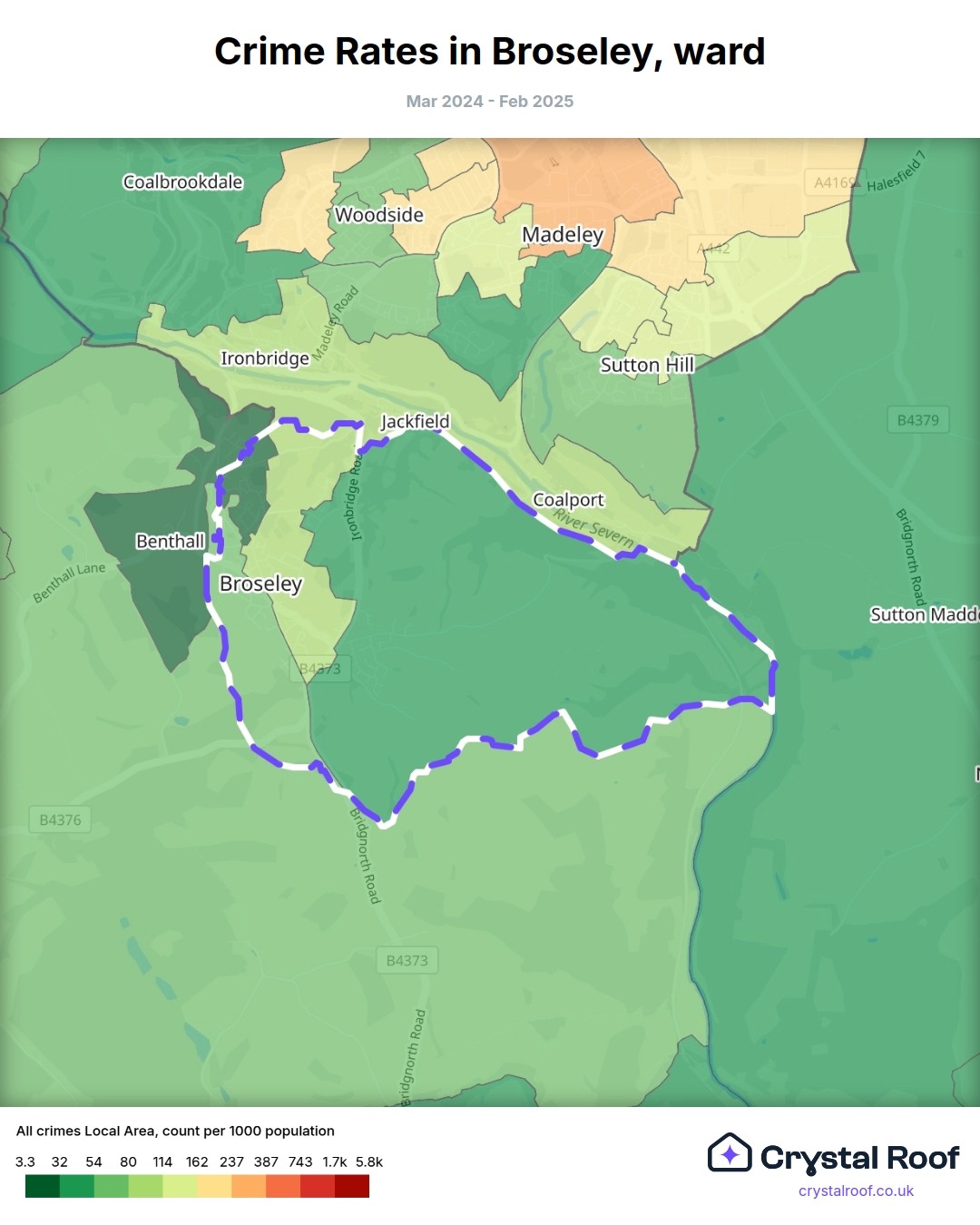 Broseley, (ward) includes areas with the following crime ratings (see map):