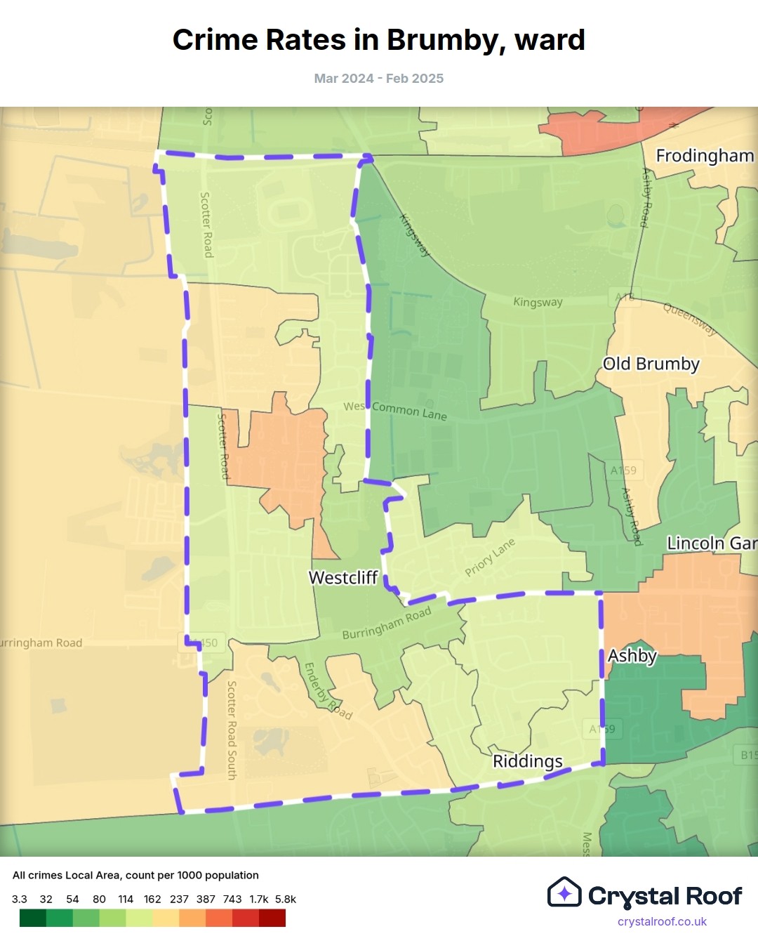 Brumby, (ward) includes areas with the following crime ratings (see map):