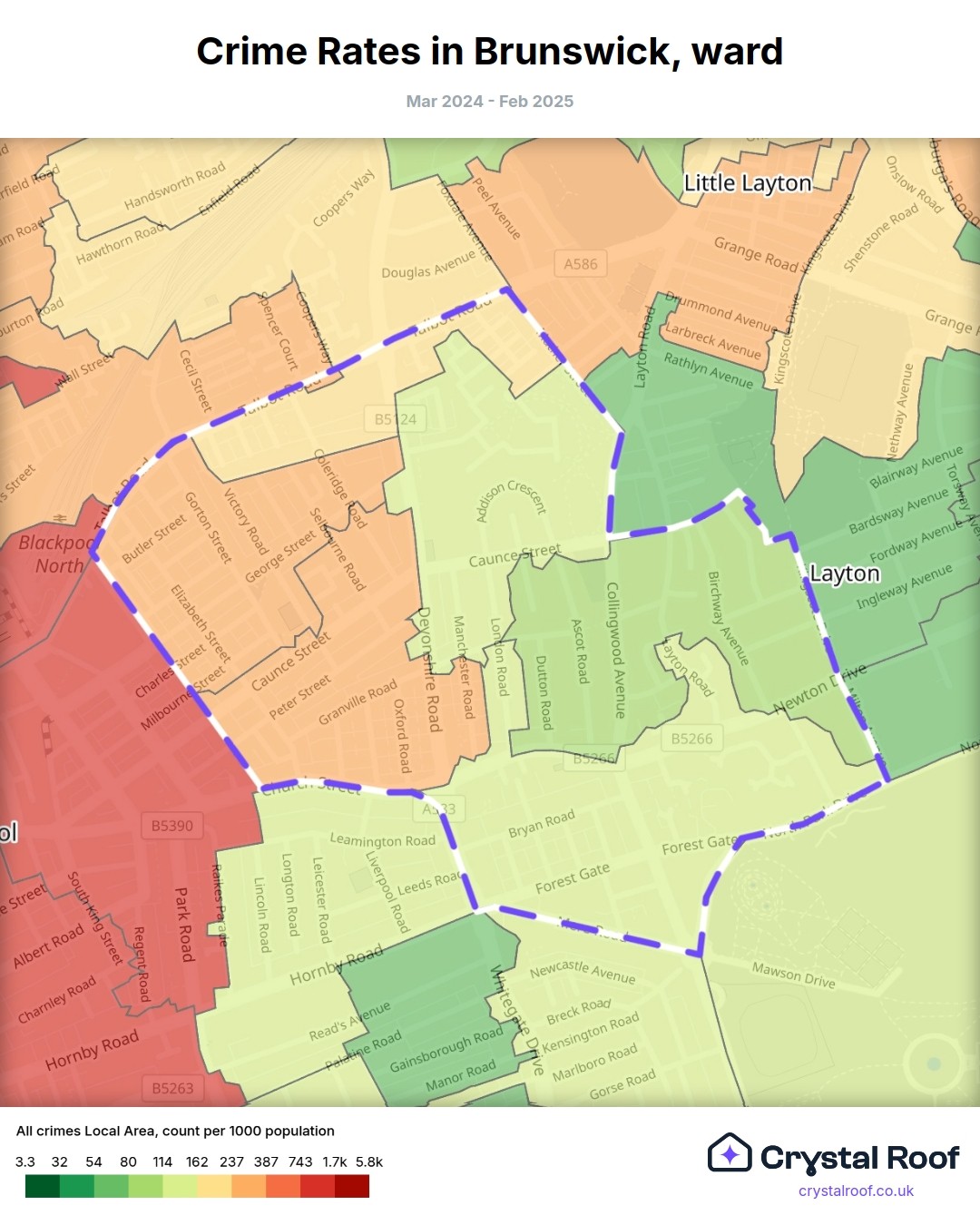 Brunswick, (ward) includes areas with the following crime ratings (see map):