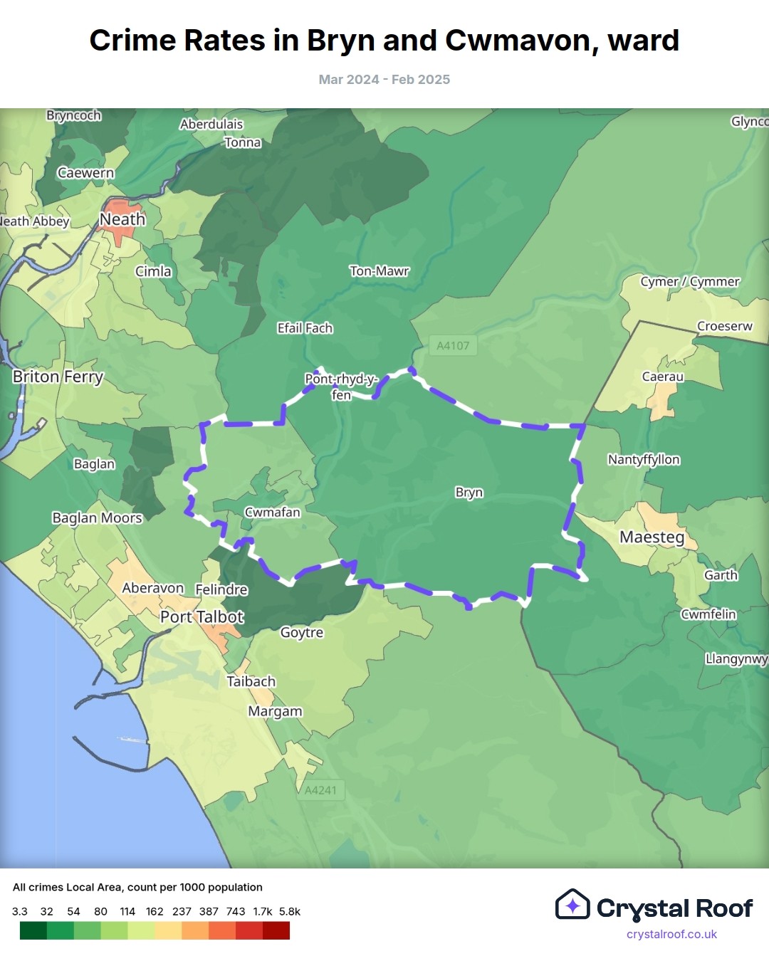 Bryn and Cwmavon, (ward) includes areas with the following crime ratings (see map):