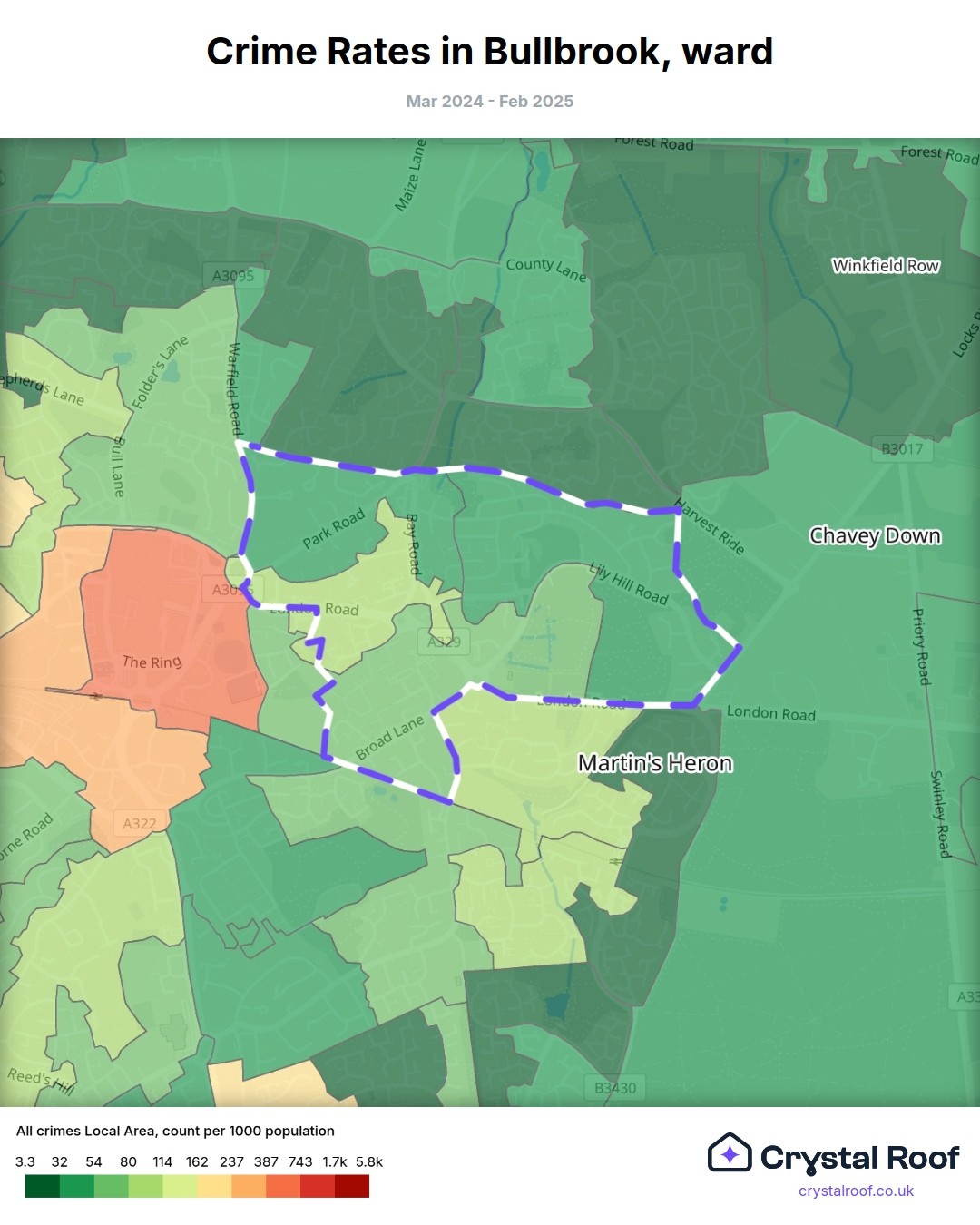 Bullbrook, (ward) includes areas with the following crime ratings (see map):