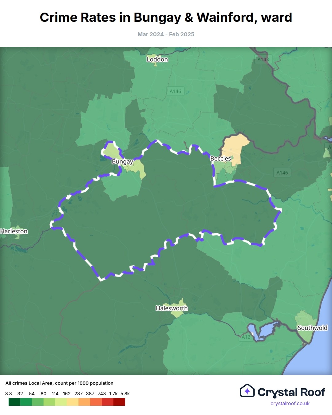 Bungay & Wainford, (ward) includes areas with the following crime ratings (see map):
